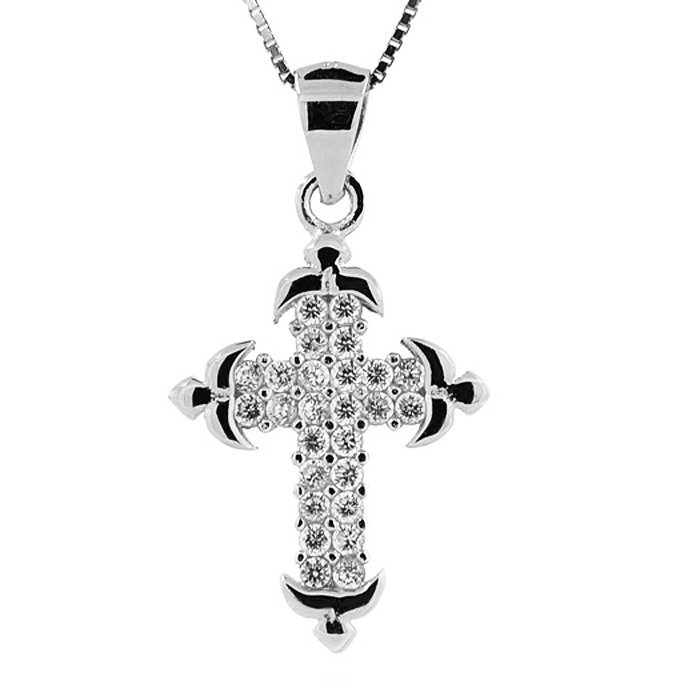 Zawieszka Srebrna Krzyżyk Białe Cyrkonie