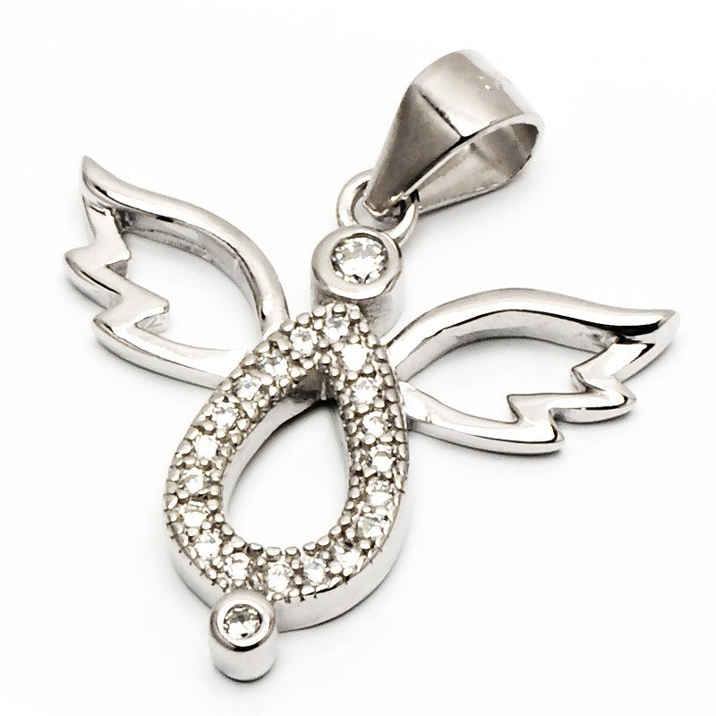 Zawieszka Srebrna Aniołek Białe Cyrkonie