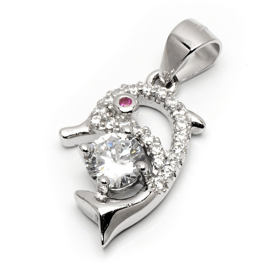 Zawieszka Srebrna Delfin z Białymi Cyrkoniami