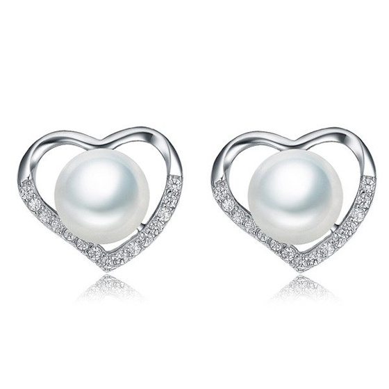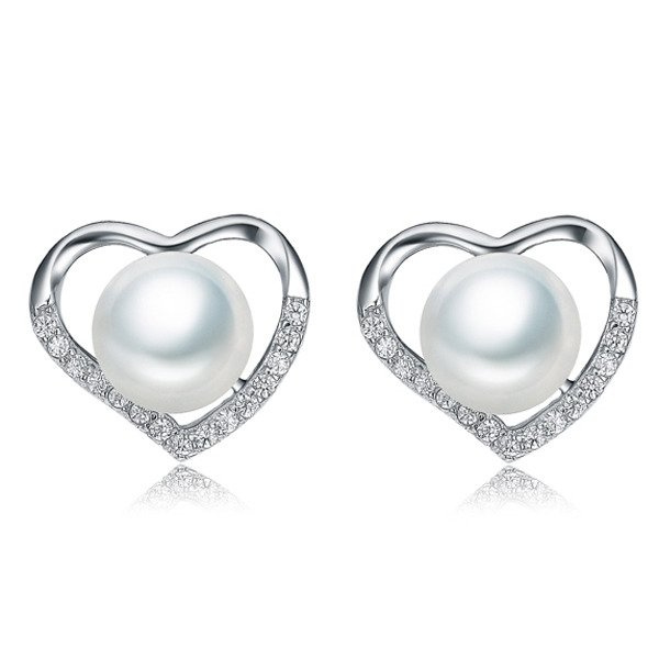 Srebrne Kolczyki Serduszka z Perłami