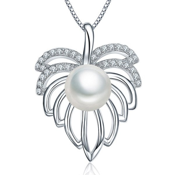 Srebrna Zawieszka w Kształcie Liścia z Perłą