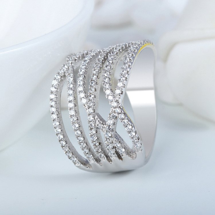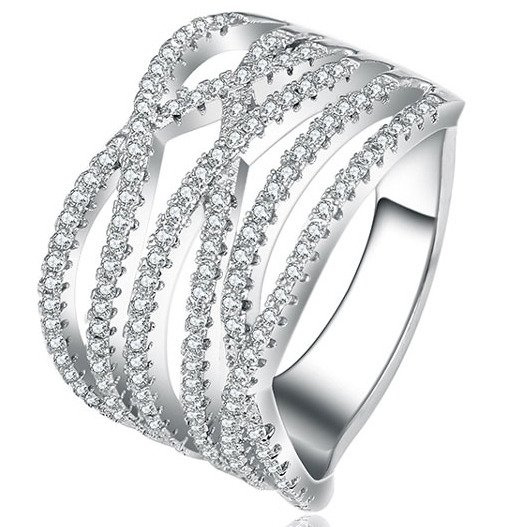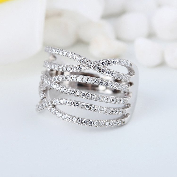 Szeroka Obrączka Srebrna Wysadzana Cyrkoniami