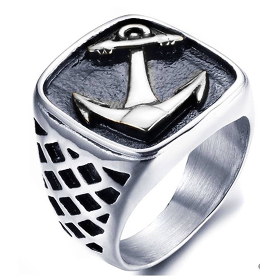 Sygnet ze Złotą Kotwicą Stal Chirurgiczna