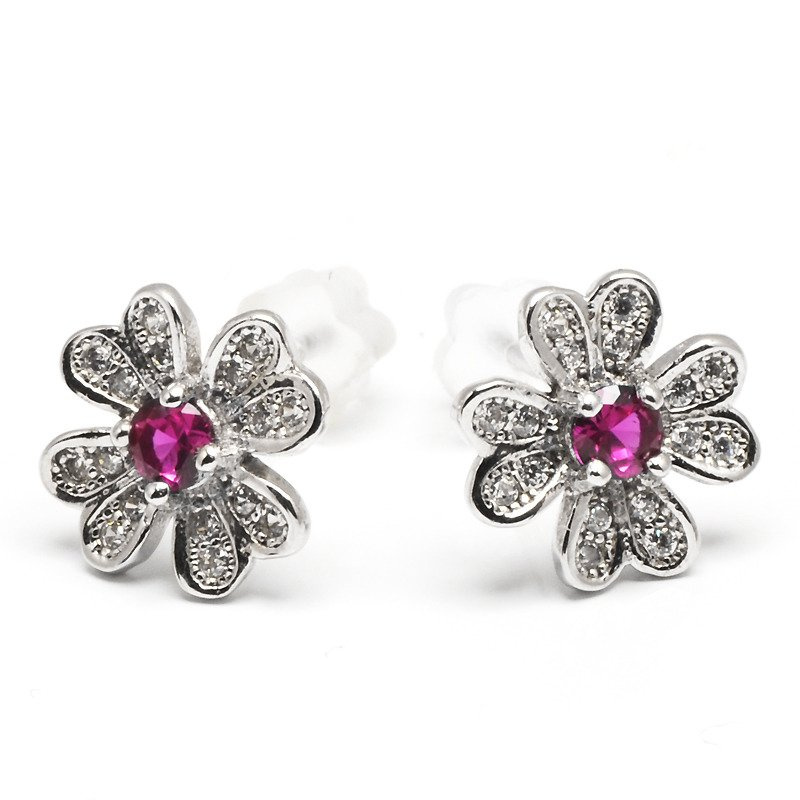 Srebrne Kolczyki Kwiat z Rubinowym Oczkiem