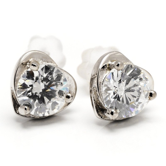 Srebrne Kolczyki Serduszko z Cyrkonią
