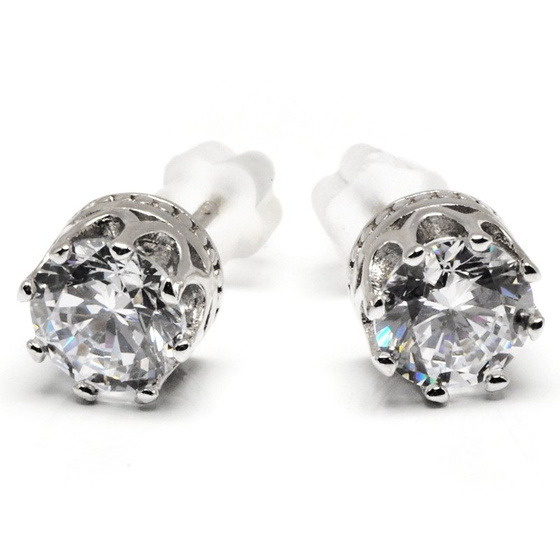 Srebrne Kolczyki Korona z Białymi Cyrkoniami