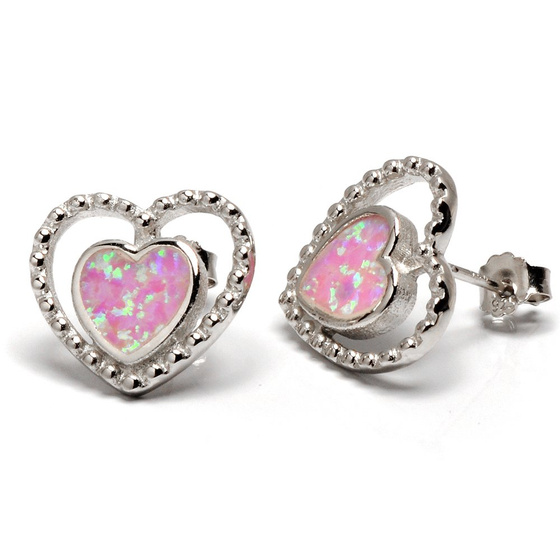 Srebrne Kolczyki Serce z Rózowym Opalem