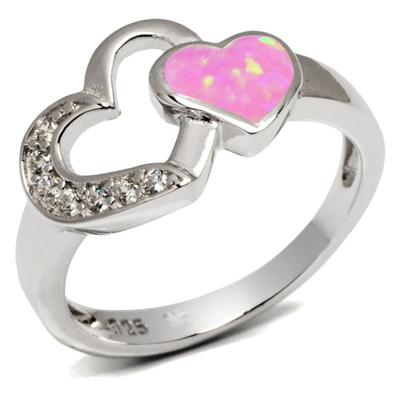 Srebrny Pierścionek Dwa Serca z Opalem i Cyrkonie
