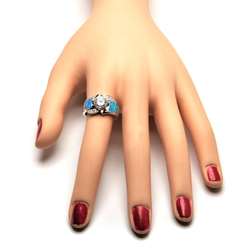 Szeroki Pierścionek Srebrny z Opalem i Cyrkoniami