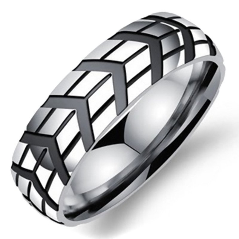 Obrączka ze Stali Szlachetnej z Czarnym Zdobieniem
