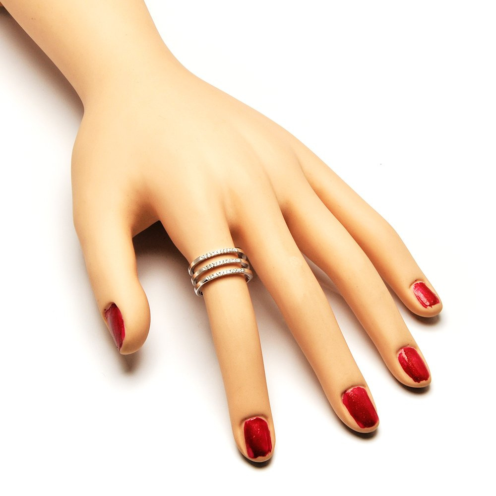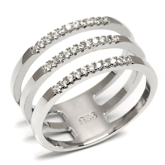 Srebrna Obrączka Trzy Rzędy Cyrkonii