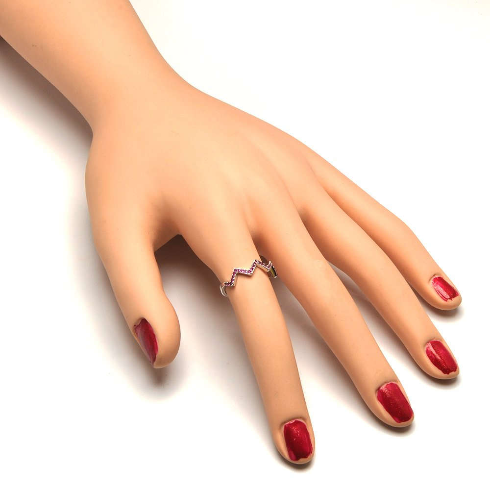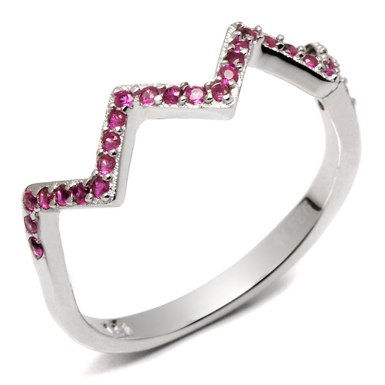 Srebrny Pierścionek Zygzak z Rubinowymi Cyrkoniami
