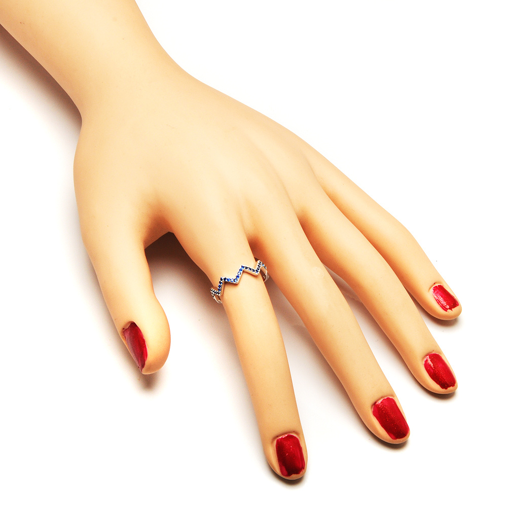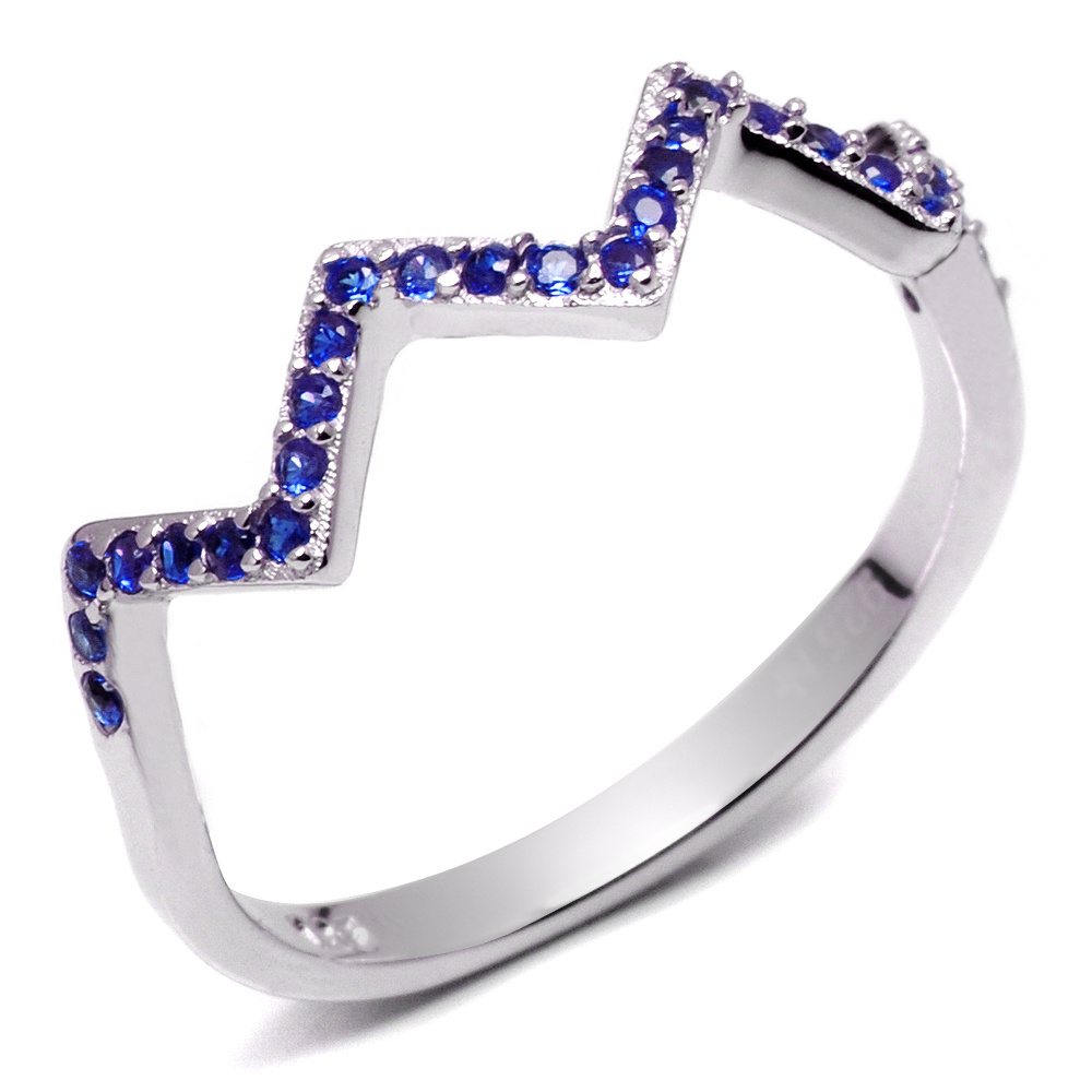 Srebrny Pierścionek Zygzak Szafirowe Cyrkonie