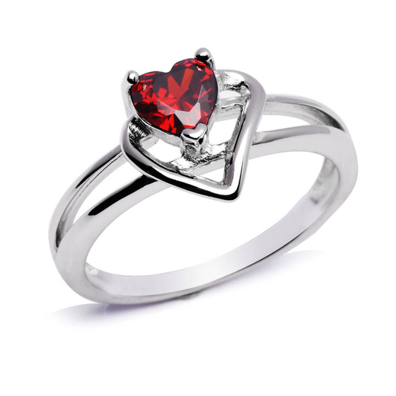 Srebrny Pierścionek Ozdobiony Czerwonym Sercem
