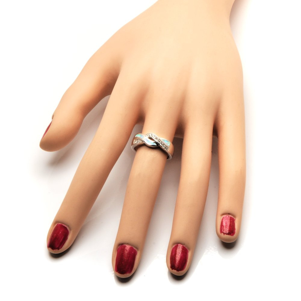 Srebrny Pierścionek z Błękitnym Opalem i Cyrkonie
