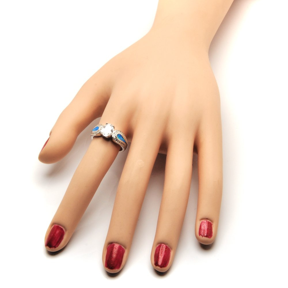 Srebrna Obrączka z Niebieskim Opalem i Cyrkoniami