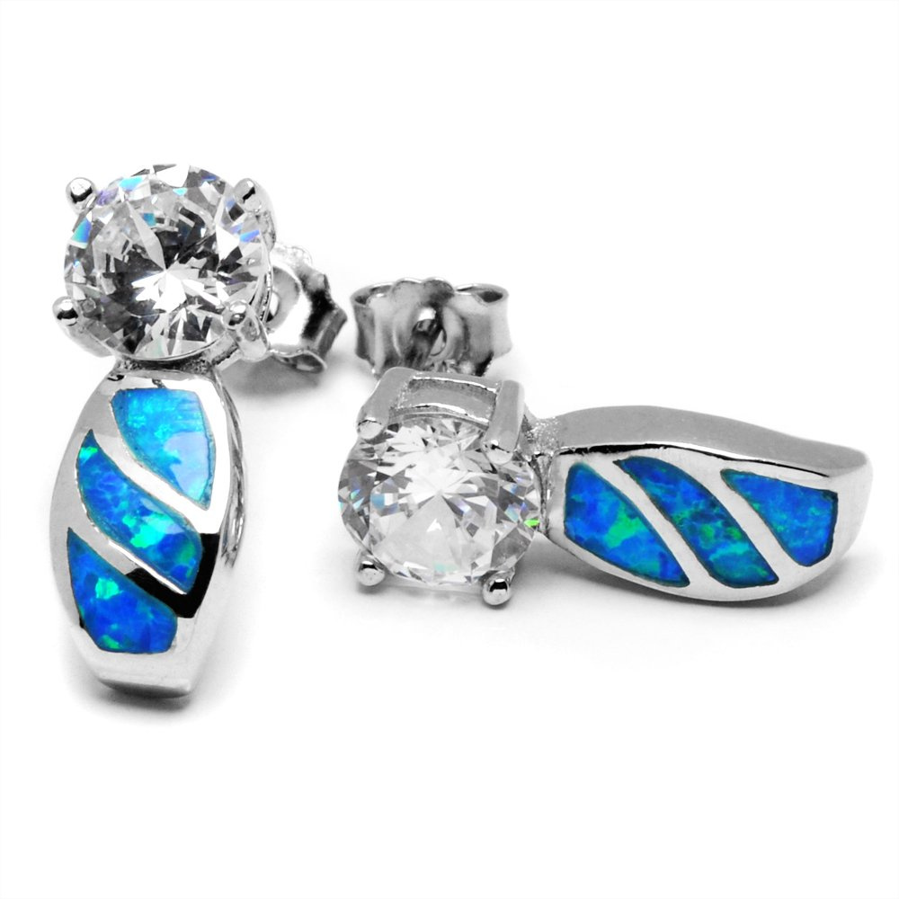 Srebrne Kolczyki z Opalem Wysadzane Cyrkoniami
