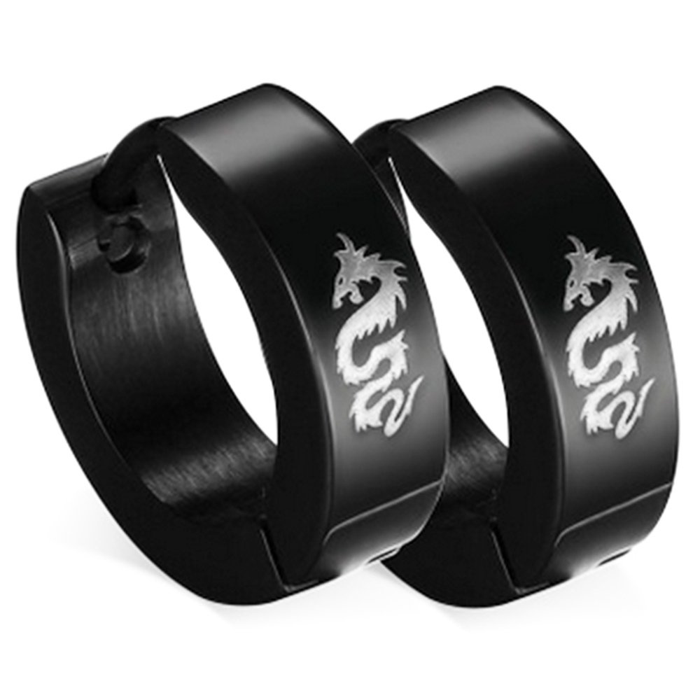 Kolczyki ze Stali Szlachetnej Czarne Motyw Smoka