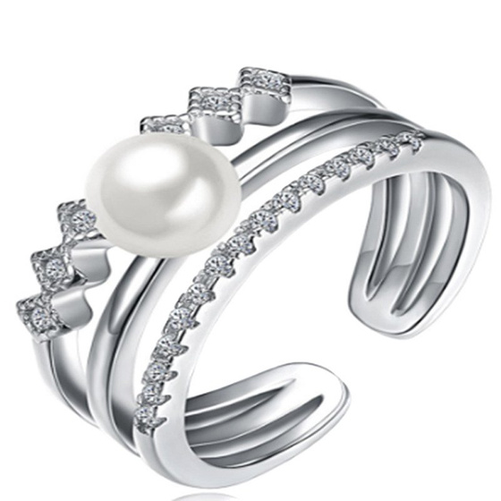 Srebrna Obrączka z Perłą i Cyrkoniami