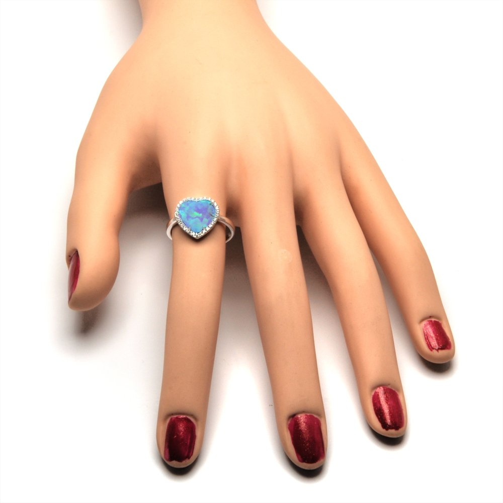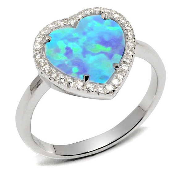 Srebrny Pierścionek Serce z Opalem i Cyrkoniami