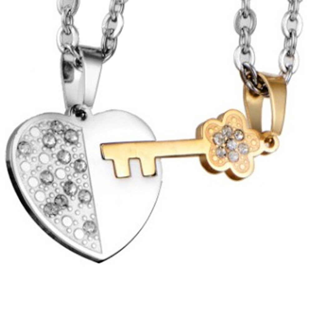 Komplet 2 Naszyjników dla Pary Serce i Kluczyk