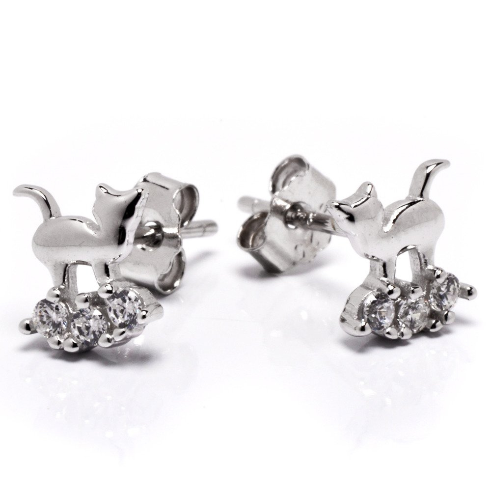 Srebrne Kolczyki Kotki z Cyrkoniami
