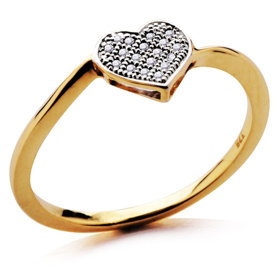 Pierścionek Złoty Serduszko Wysadzane Brylantami