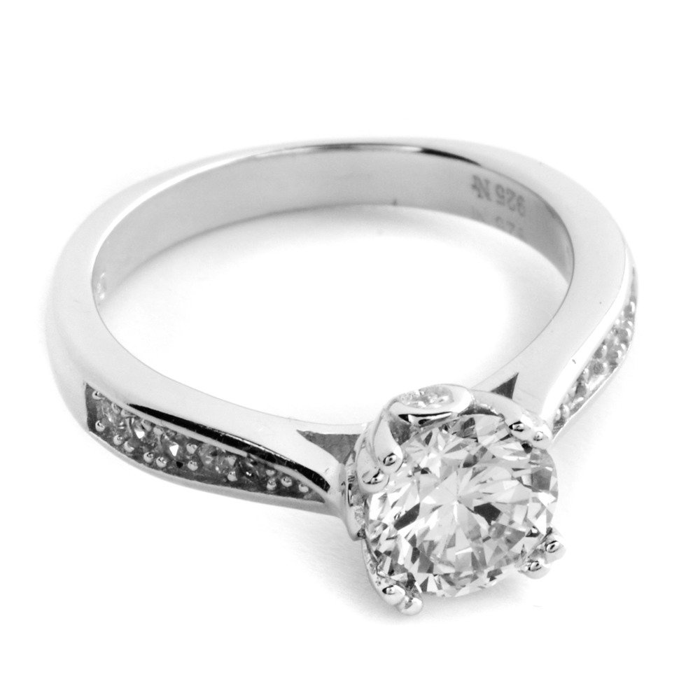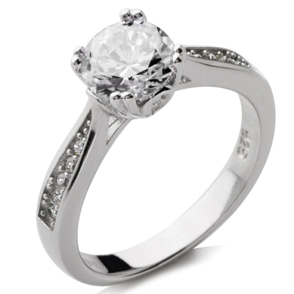 Srebrny Pierścionek z Białą Okrągłą Cyrkonią