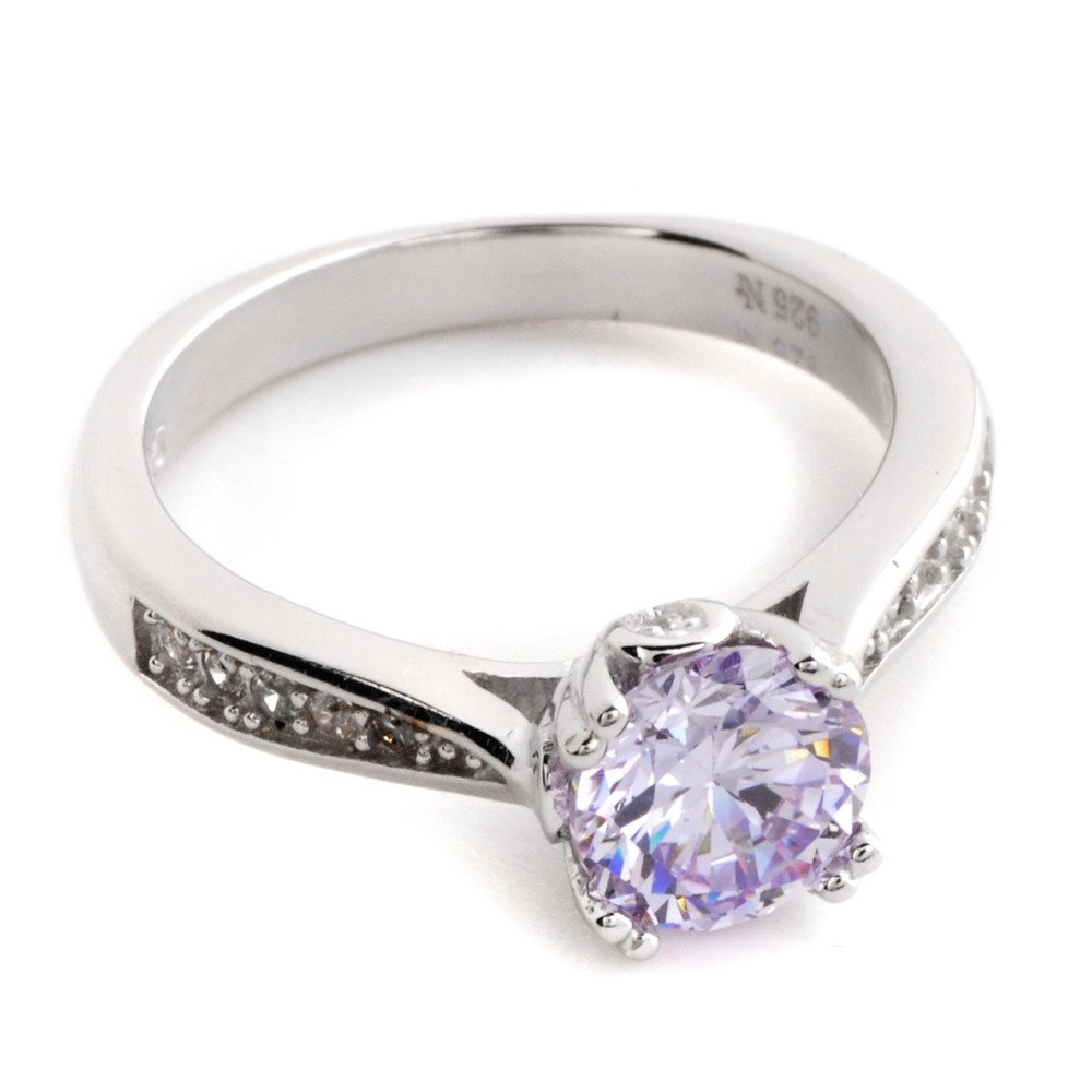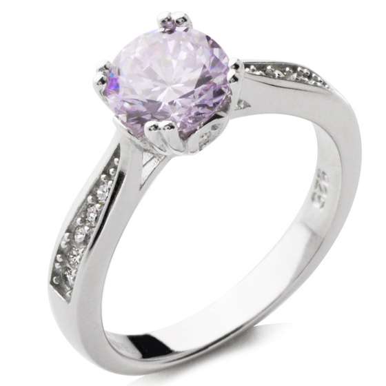 Srebrny Pierścionek z Lawendową Okrągłą Cyrkonią