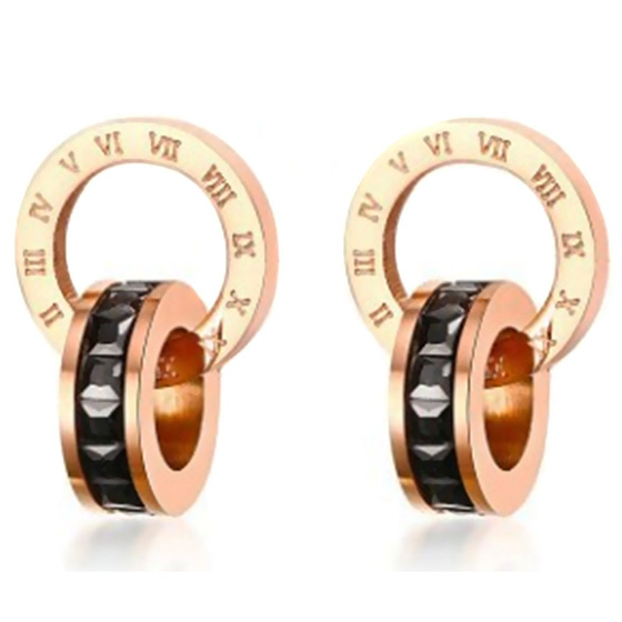 Złote Kolczyki Dwa Koła Cyrkonie Stal Szlachetna