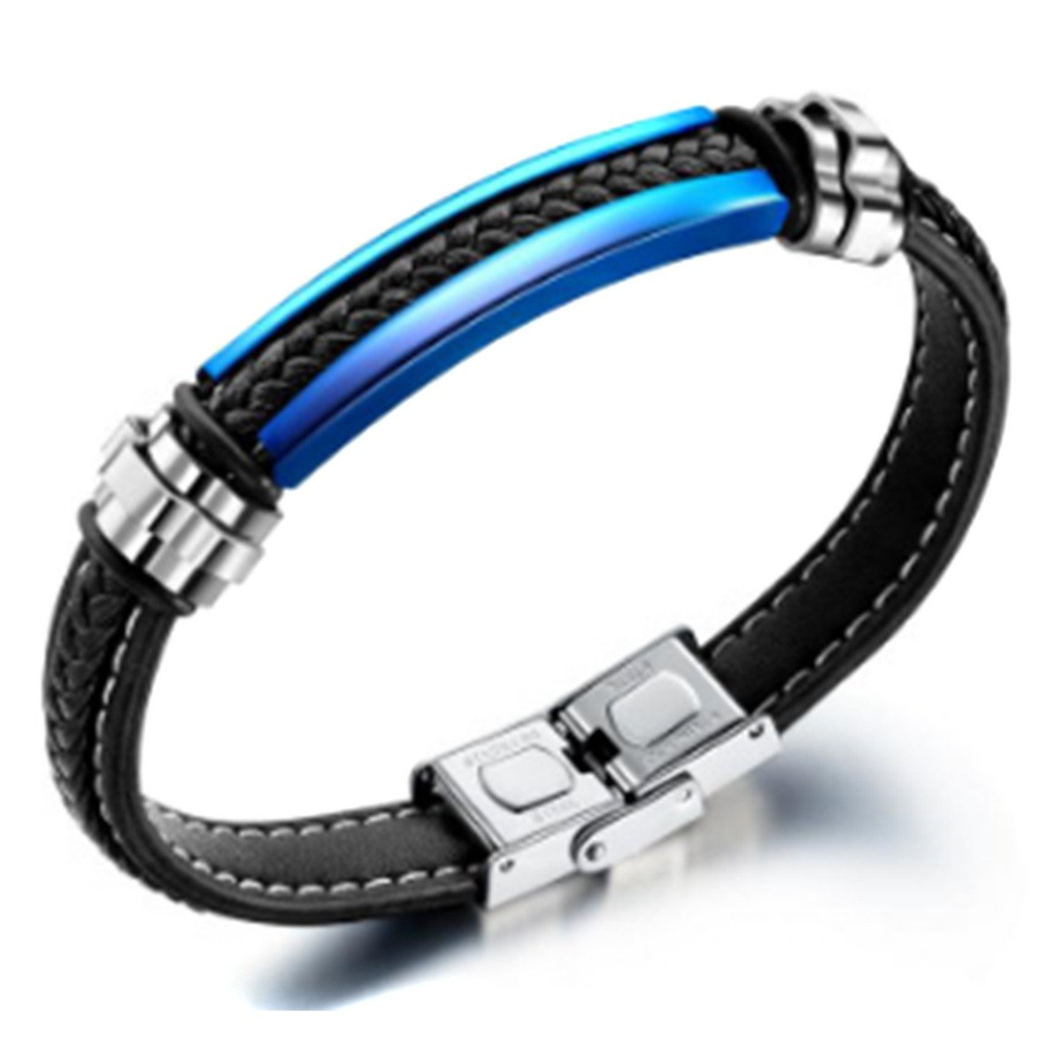 Czarna Bransoletka ze Skóry i Stal Szlachetna