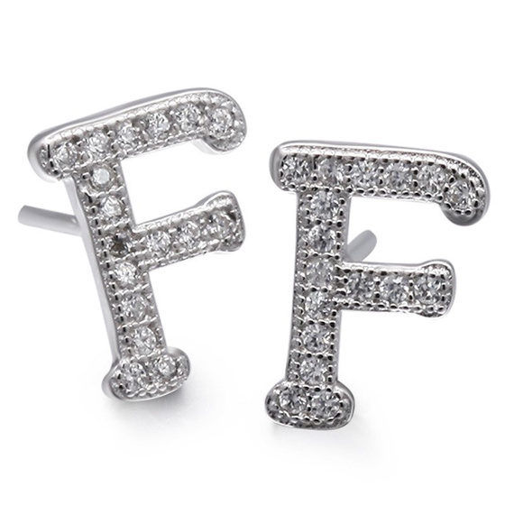 Srebrne Kolczyki Literki F z Cyrkoniami