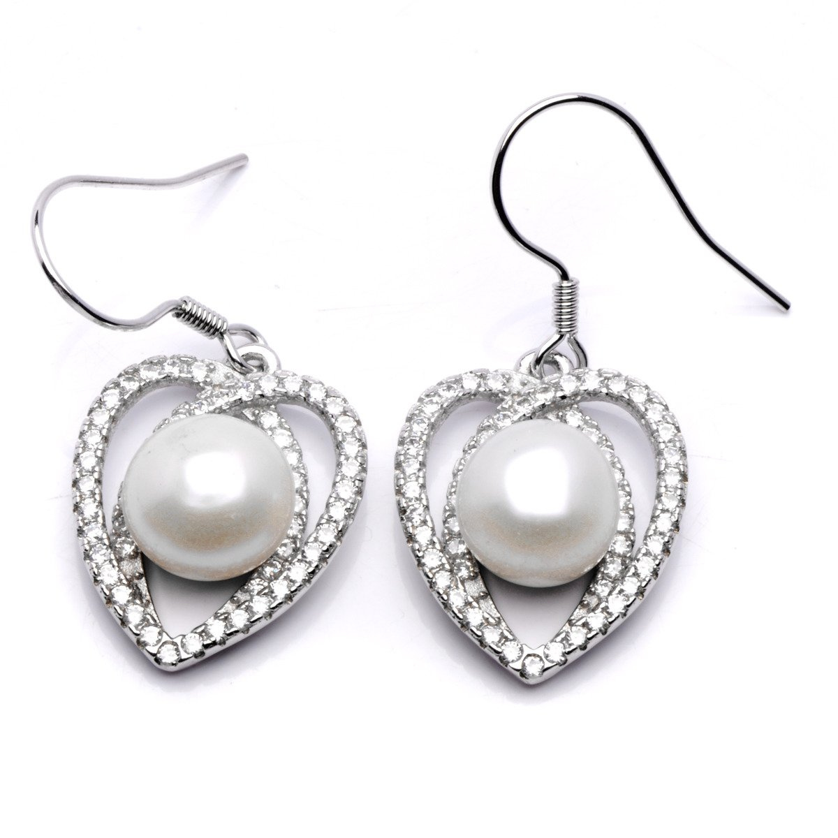Srebrne Kolczyki Serduszka z Perłami i Cyrkoniami