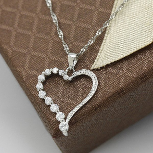 Srebrna Zawieszka Serce Wysadzane Cyrkoniami
