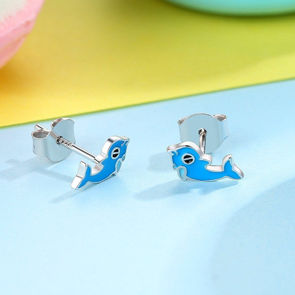Srebrne Kolczyki Niebieskie Delfiny