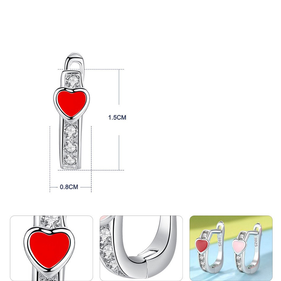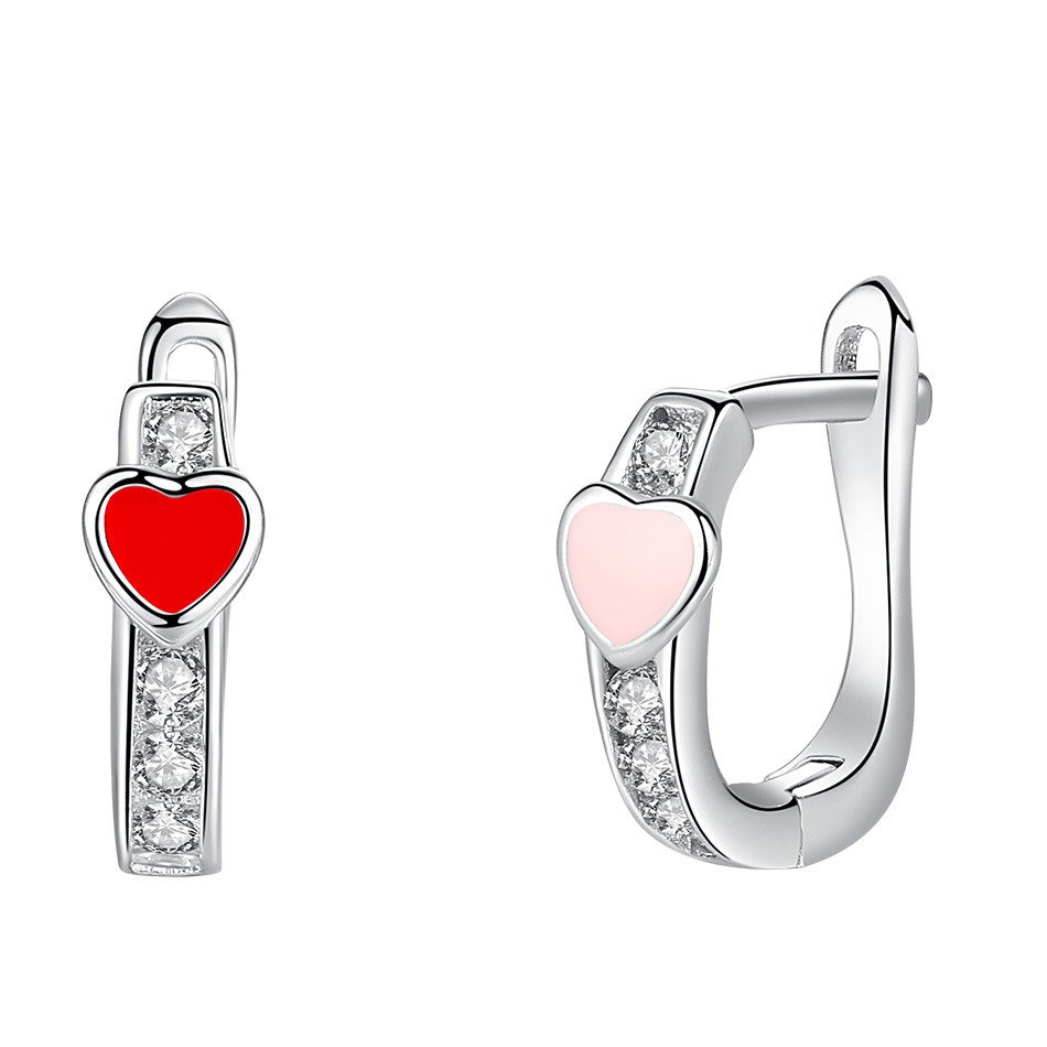 Srebrne Kolczyki z Czerwonym i Różowym Sercem