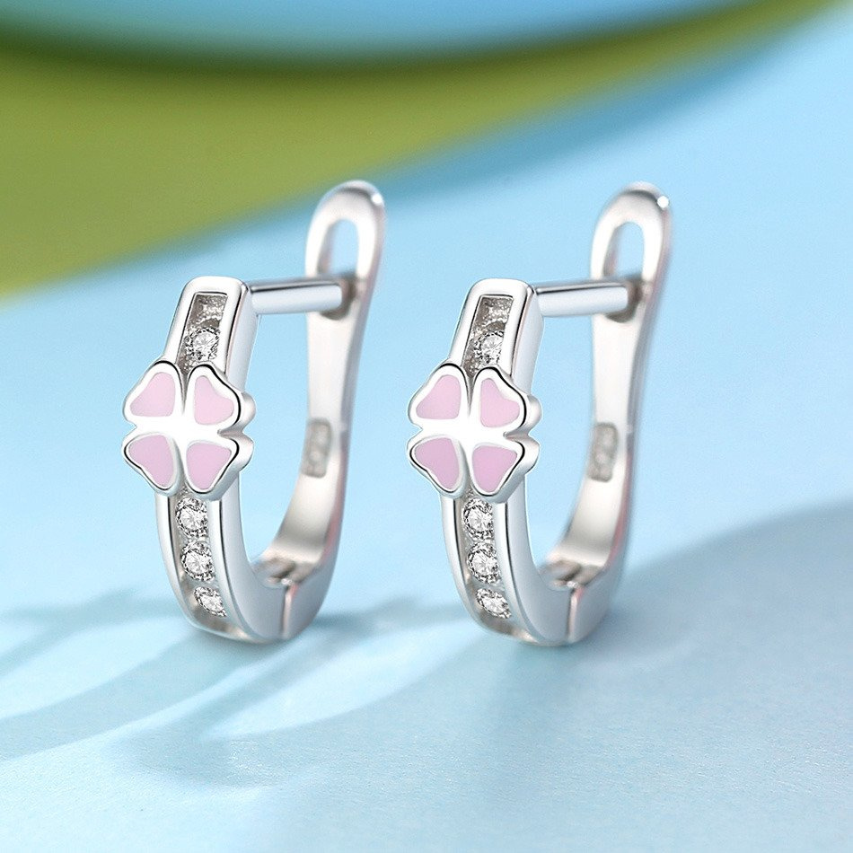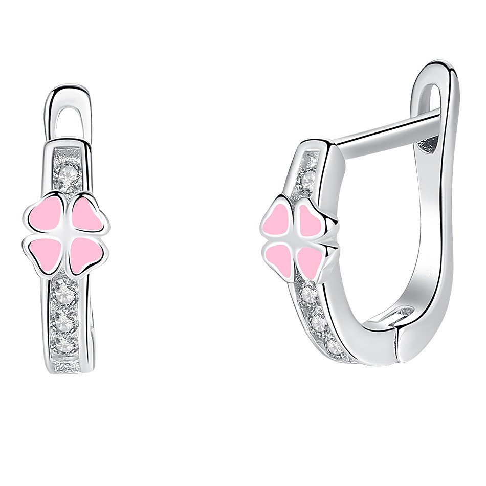 Srebrne Kolczyki Różowe Koniczynki
