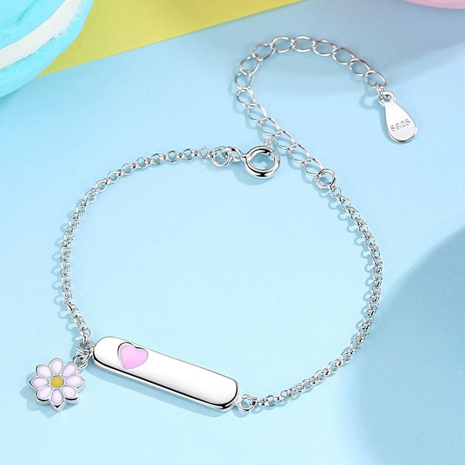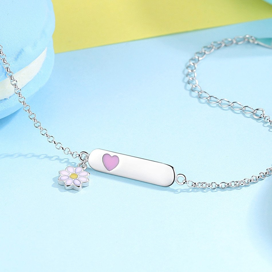 Bransoletka Srebrna z Różowym Kwiatuszkiem