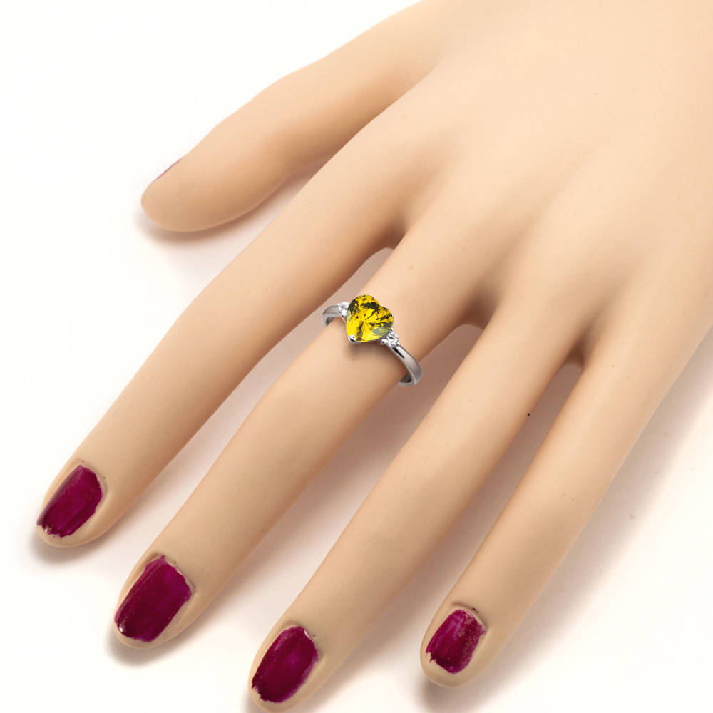 Srebrny Pierścionek Serduszko z Żółtą Cyrkonią