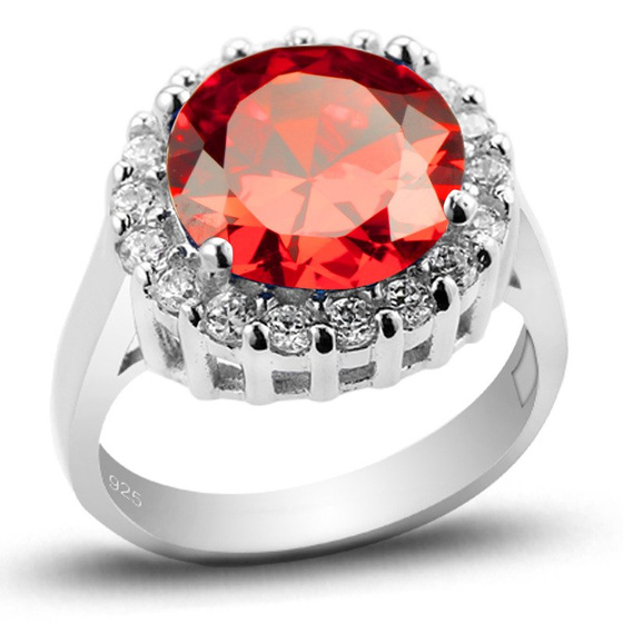 Pierścionek Srebrny Okrągłą Czerwoną Cyrkonią