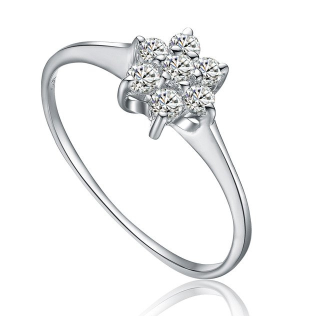 Srebrny Pierścionek Kwiat Diamentowe Cyrkonie
