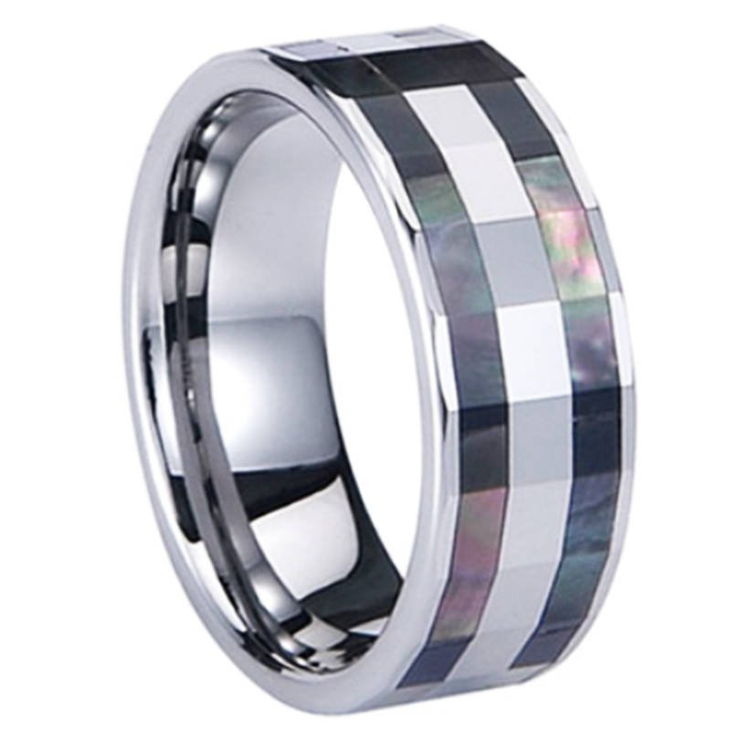 Obrączka z Wolframu z Masą Perłową