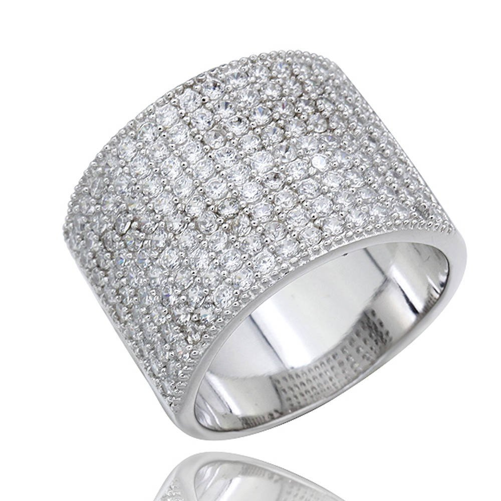 Szeroka Obrączka Srebrna Wysadzana Cyrkoniami