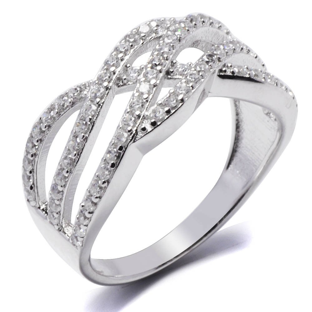 Srebrny Pierścionek Przeplatany Cyrkoniami