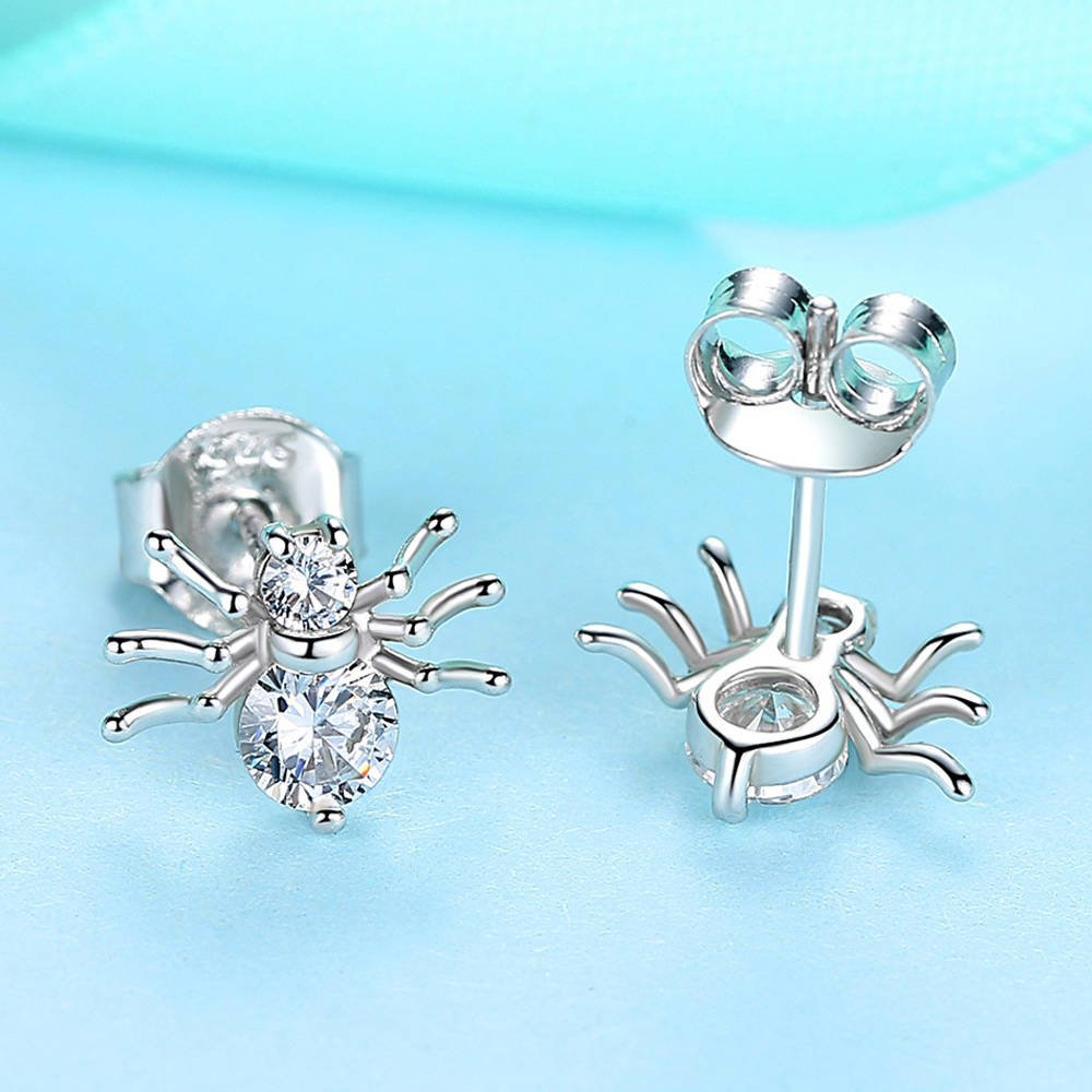 Srebrne Kolczyki Pajączek z Cyrkoniami