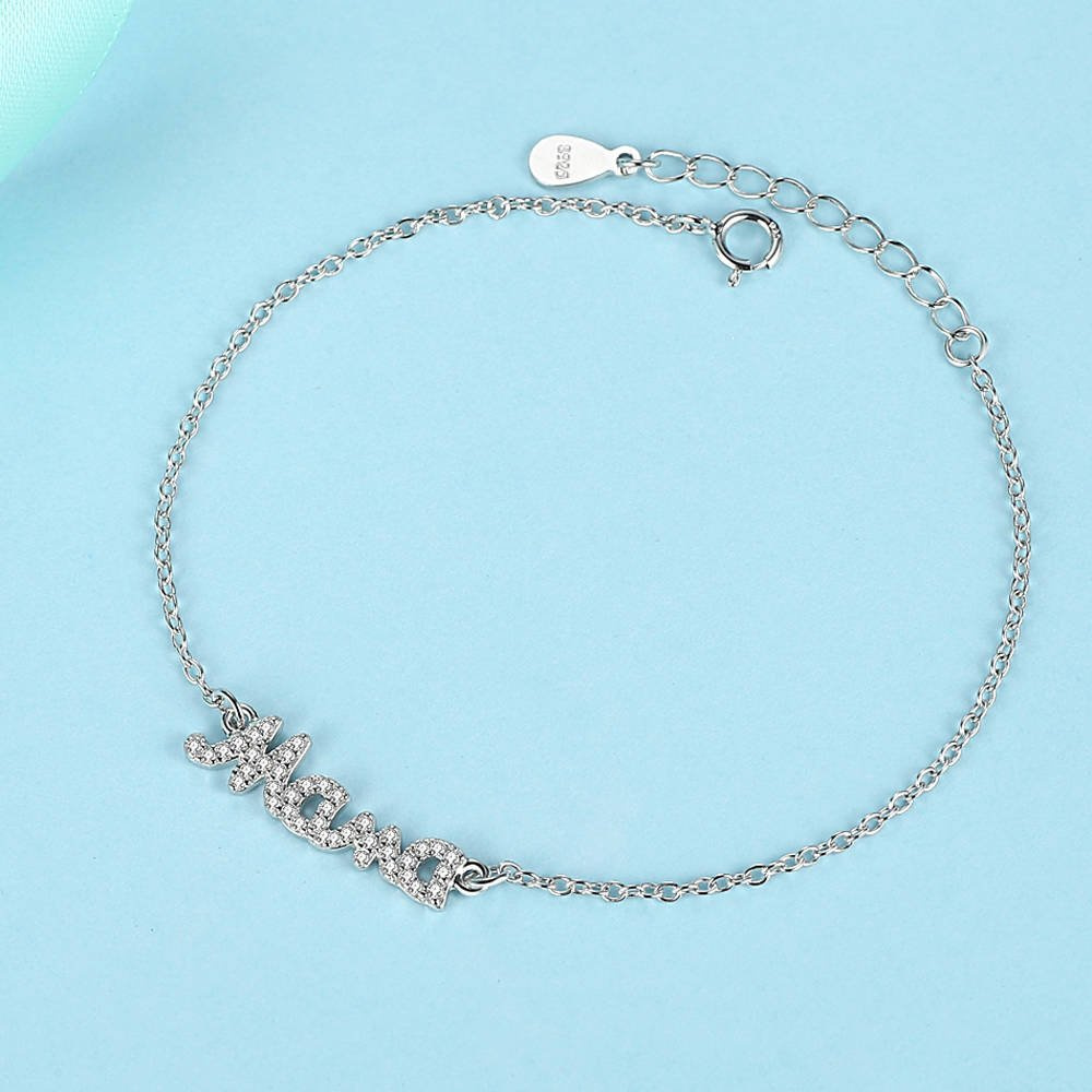 Bransoletka Srebrna Napis MAMA z Cyrkoniami