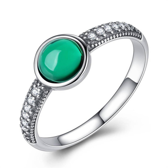 Srebrny Pierścionek z Zielonym Kamieniem