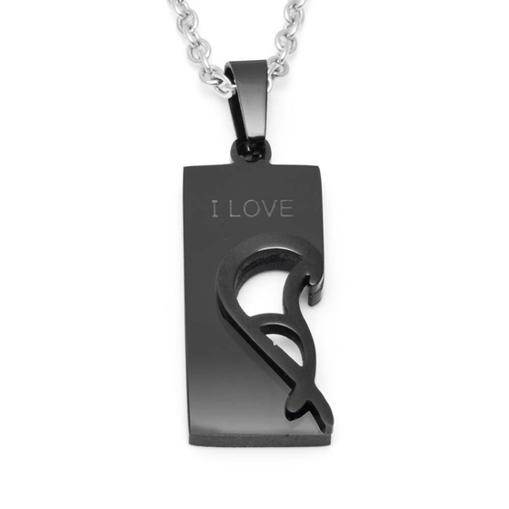 Czarny Naszyjnik z Połową Serca Stal Szlachetna