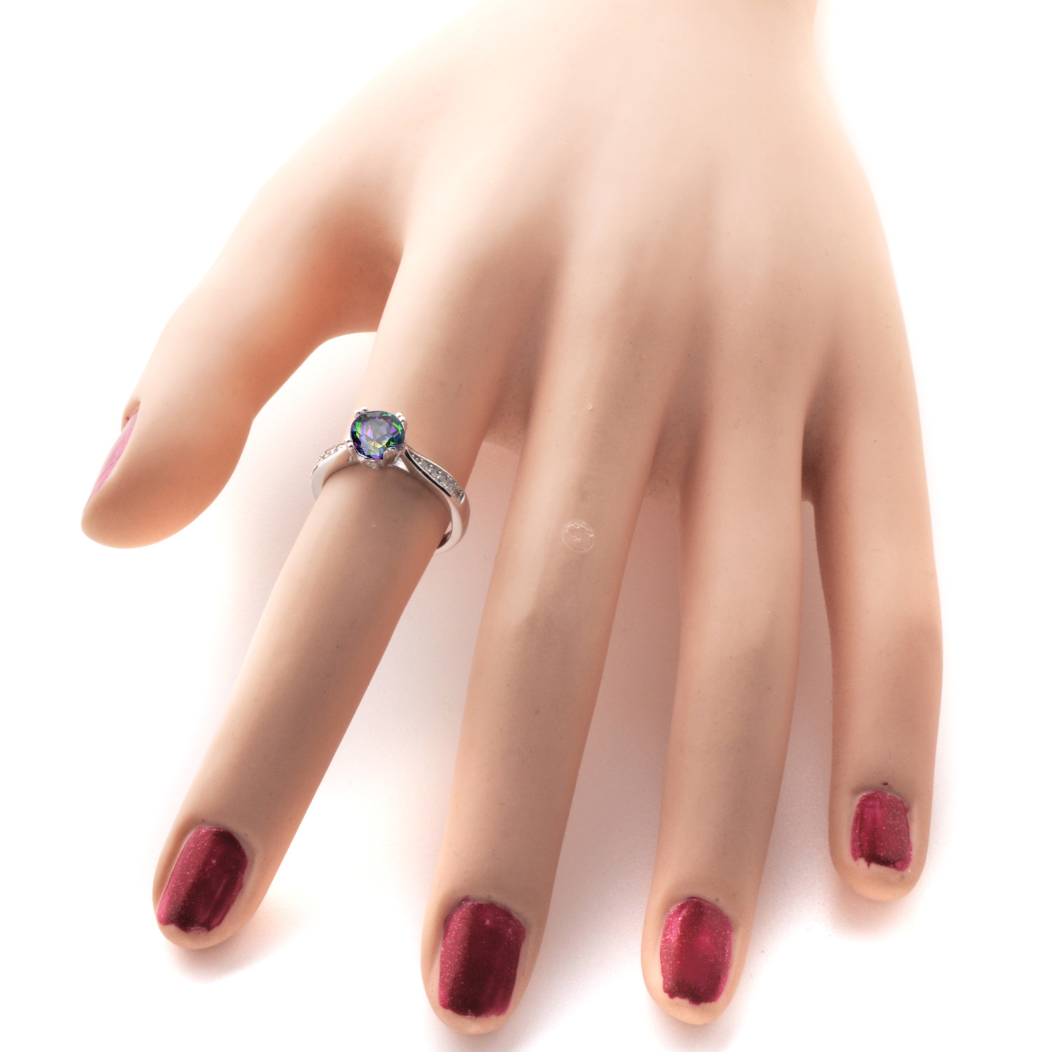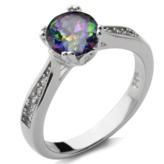 Srebrny Pierścionek z Okrągłą Cyrkonią Multikolor