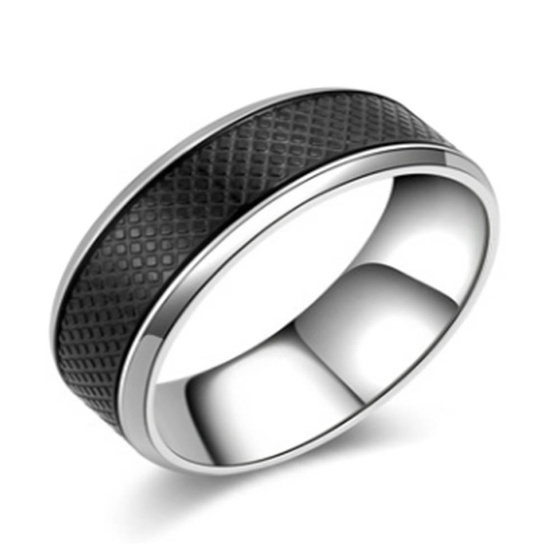 Obrączka z Czarną Aplikacją ze Stali Szlachetnej